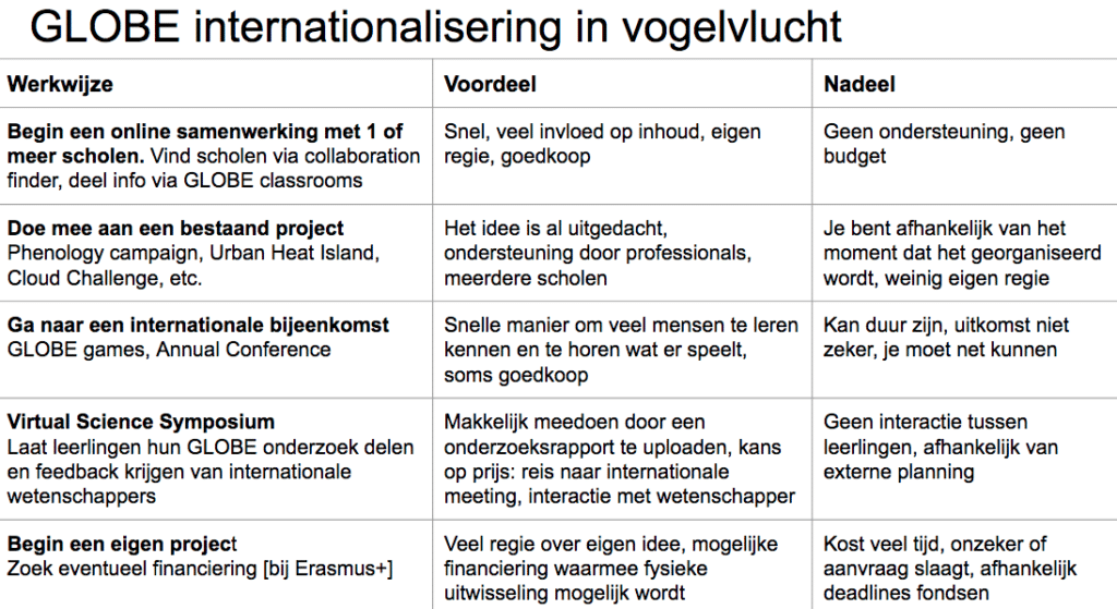 Er zijn verschillende manieren waarop je internationale samenwerking binnen GLOBE kunt opzetten: