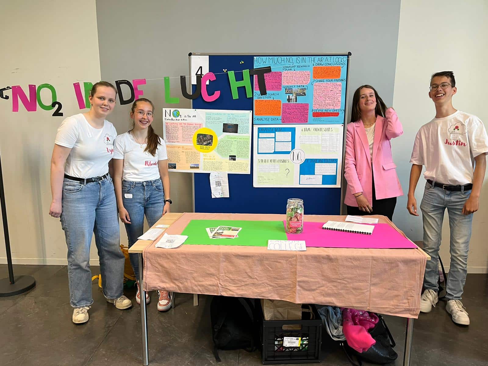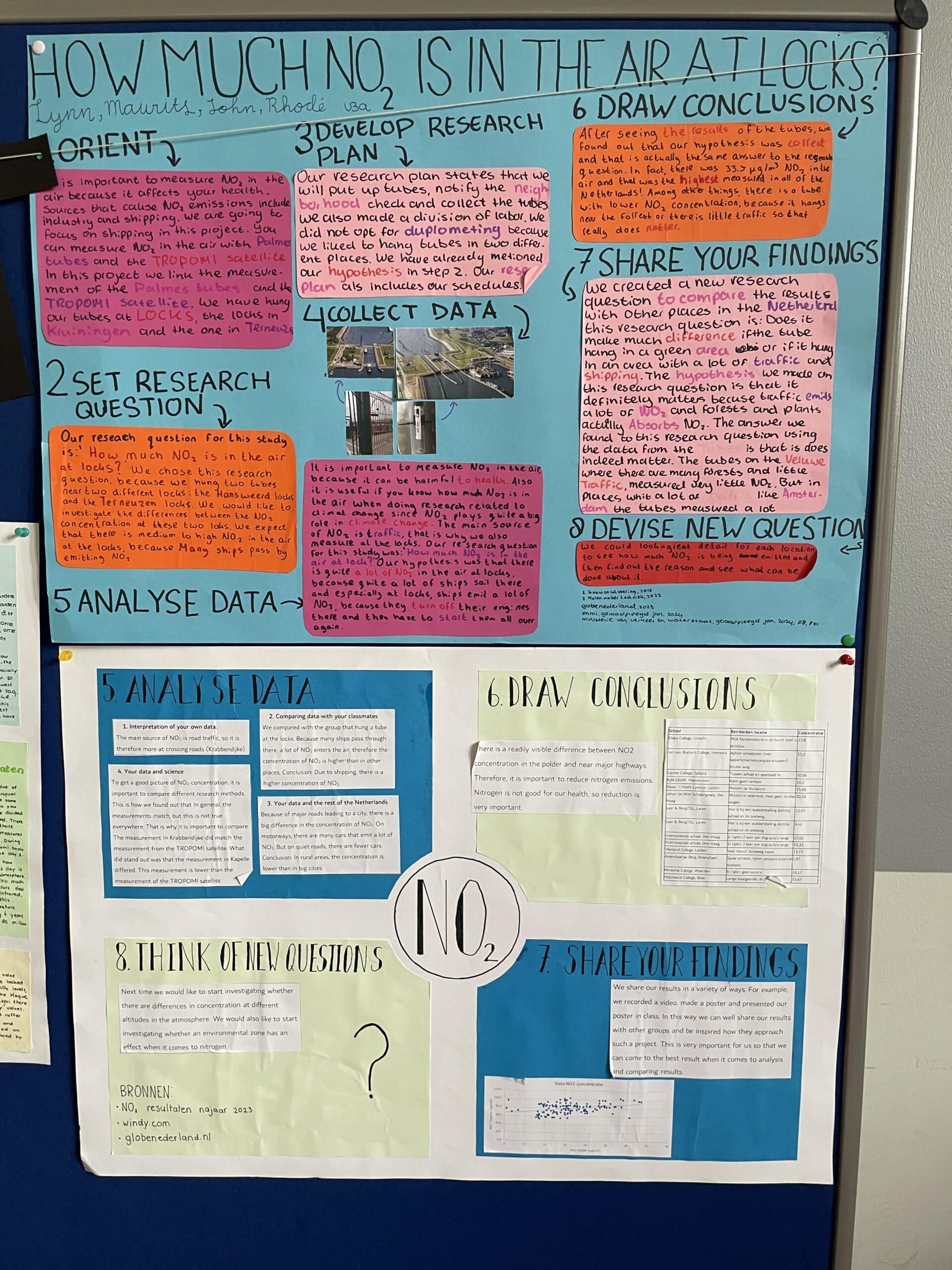Leerlingen Mara, Lynn, Justin en Rhodé hebben onderzoek gedaan naar de NO2 concentratie bij sluizen om te onderzoeken of er een verband is met de scheepsvaart en de concentratie NO2. De resultaten hebben ze gepresenteerd op de Science Fair (2024) met een poster en een verslag.