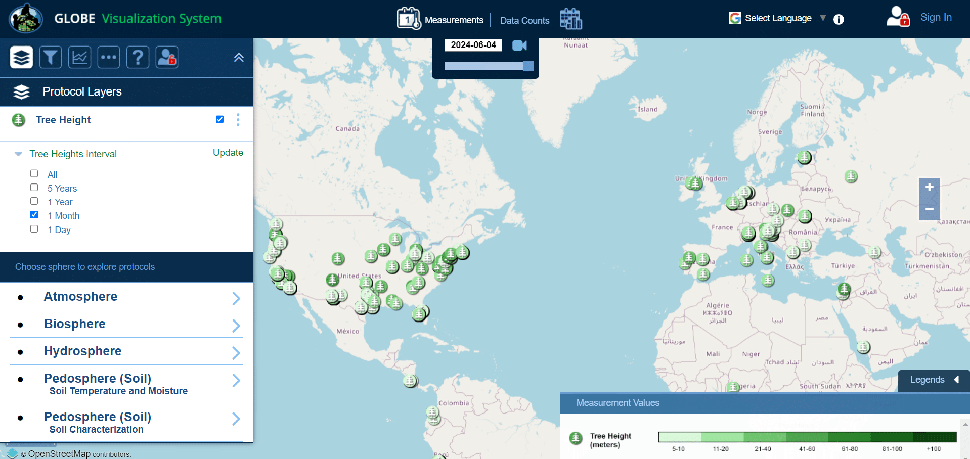 - Bekijk de data door een specifiek protocol te kiezen. Voor TAG kies je Biosphere –> Tree Height