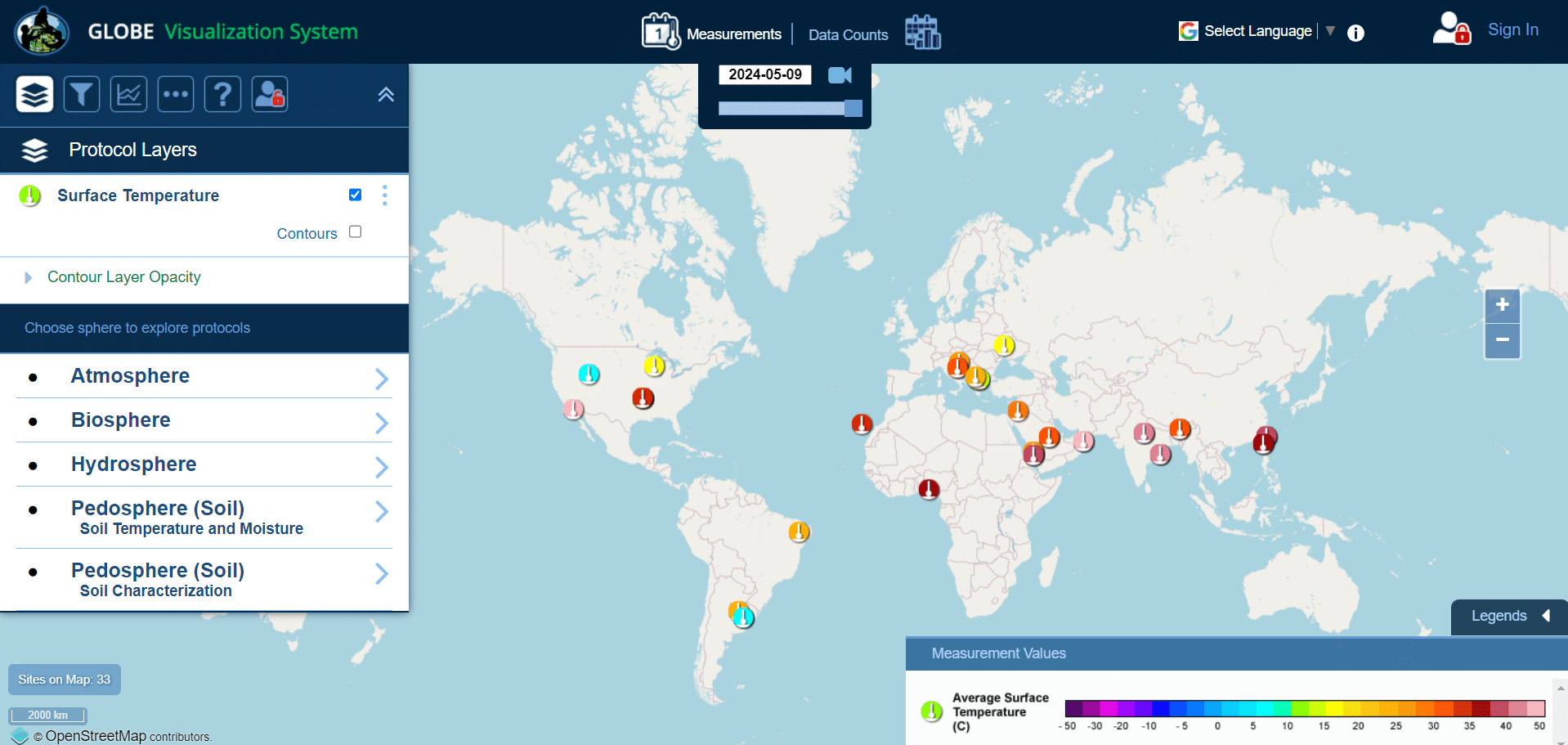 - Bekijk de data door een specifiek protocol te kiezen. Voor UHIE kies je Atmosphere – Surface Temperature.