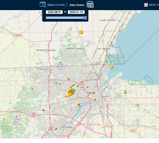 In Toledo waar ik werk (Universiteit van Toledo) hebben mijn studenten ook deelgenomen aan dit project over Urban Heat Island Effect. Op de afbeelding zie je dat er een mooie spreiding is van meetpunten rondom Toledo, dankzij de vele studenten die meededen. In het gebied hebben we 3 weerstations die continu data verzamelen. Deze zijn in de afbeelding goed te zien met de grote stippen.