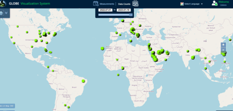 Als we kijken naar de temperatuur observaties valt op dat meer scholen metingen hebben gedaan aan luchttemperatuur dan aan oppervlaktetemperatuur, zoals te zien in onderstaande afbeeldingen. In Nederland zijn er ook verschillende sensoren die gekoppeld zijn aan GLOBE die automatisch continu data versturen. Deze zijn te zien als grote gele stippen op de kaart. Hierdoor zijn de gegevens van de studenten die in de herfst van 2022 hebben gemeten aan dit project minder goed te zien. Toch zijn deze observaties die gedaan zijn door leerlingen erg belangrijk als we willen kijken naar locale gebieden, met name rondom scholen.