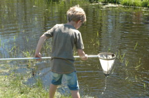 Een schepnet is één van de belangrijkste meetinstrumenten die je mee moet nemen het veld in. Zorg ervoor dat de steel niet te kort is, zodat je ook bij wat diepere slootjes kan.